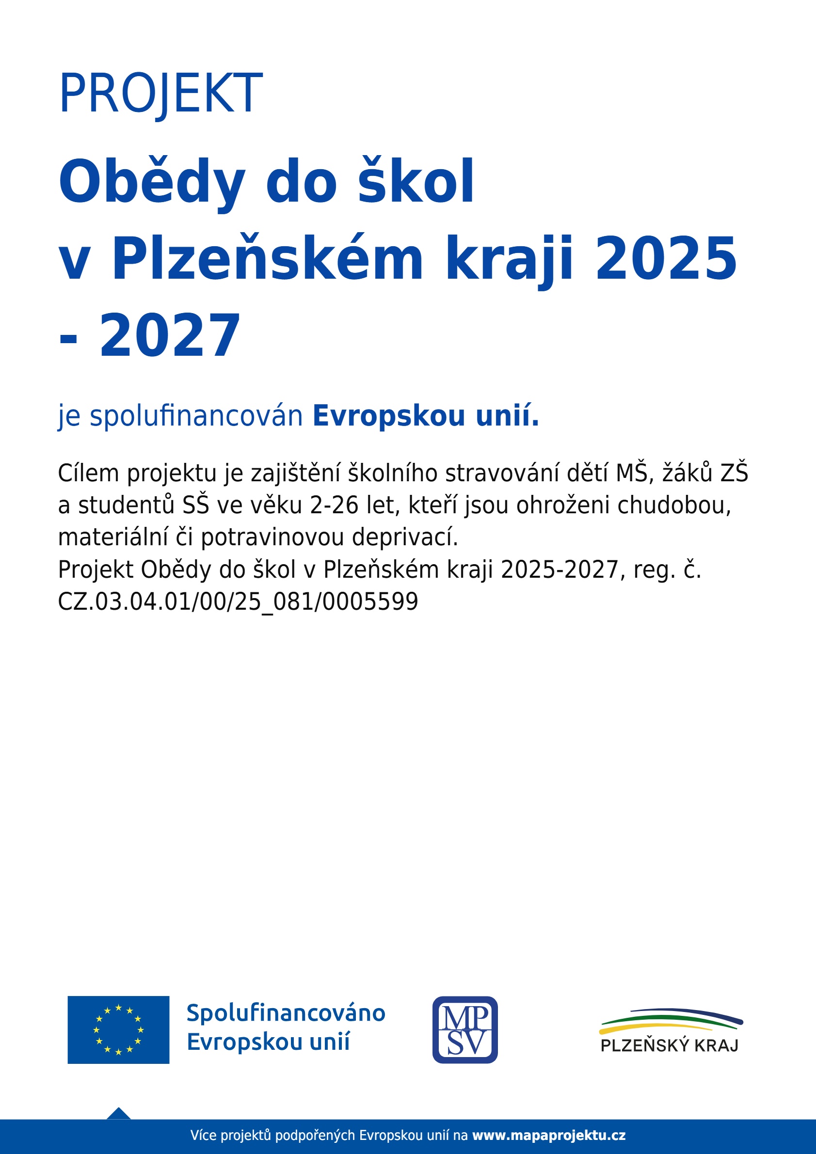 Vážení rodiče, milí prvňáčci,v pondělí 1. září 2025 vás čeká velký den. Sraz všech rodičů a prvňáčků bude před školou v 7:45 hodin, kde na vás budou čekat vaše třídní učitelky a paní asistentky. V 8:00 hodin vás přivítá pan ředitel a vedení školy, poté se všichni odebereme do tříd. Předpokládaný konec bude v 9:00 […]