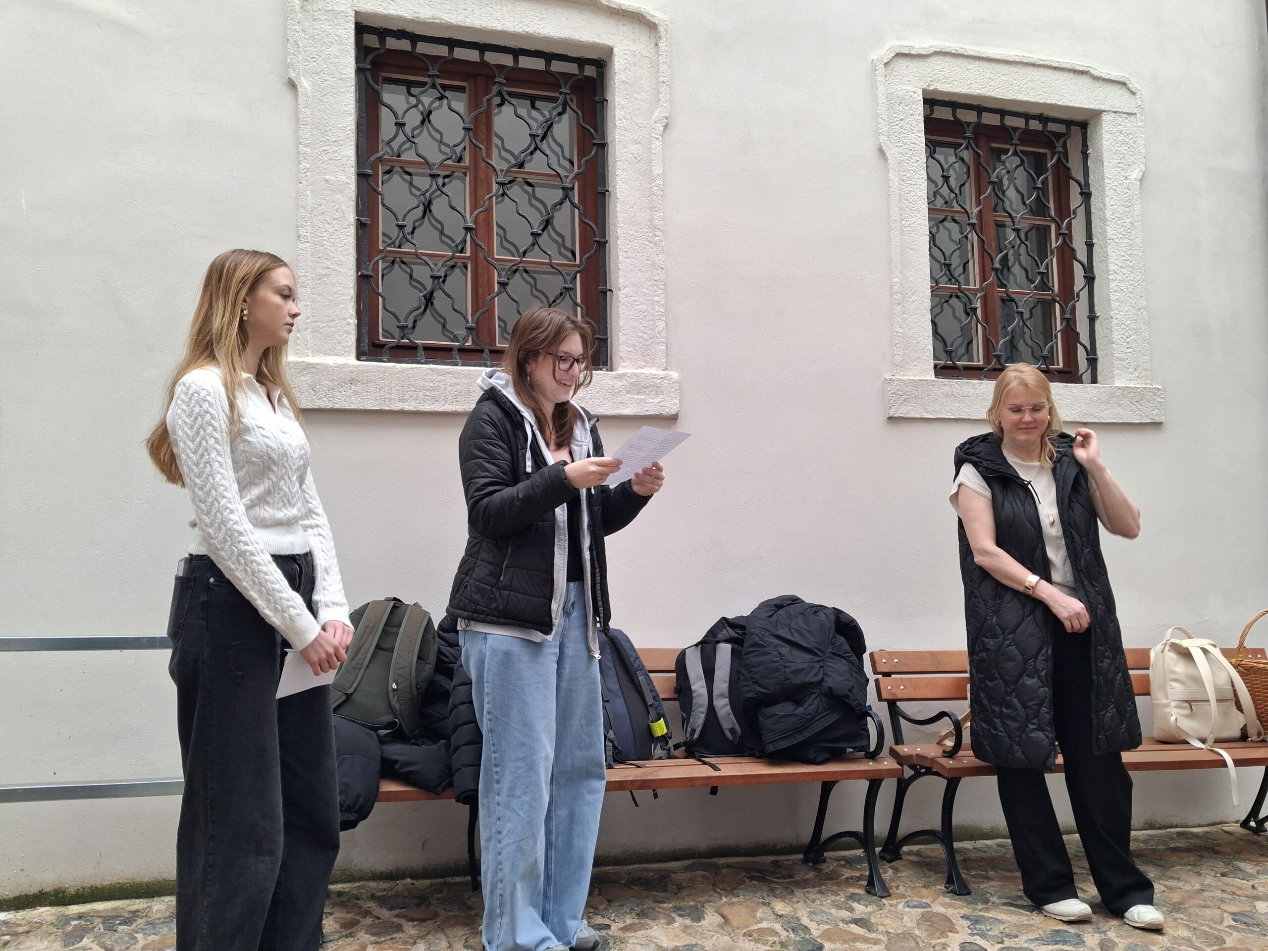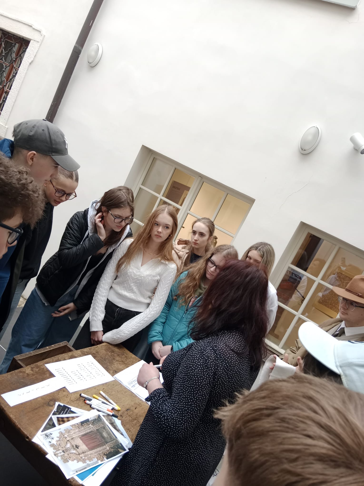 V přednáškovém sále muzea jsme si vyslechli neobyčejné příběhy čtyř židovských žen. Příběh polské baletky, která se na prahu smrti v plynové komoře pokusila o vzpouru. Slovenské dívky, která přežila v likvidačním táboře Osvětim díky tomu, že se do ní zamiloval německý důstojník. Rumunské gynekoložky, která v Osvětimi byla nucena provádět potraty a tajné porody vězeňkyň, ale také příběh německé dívky, která spolupracovala s gestapem a aby unikla deportaci, stala se “chytačem Židů”.